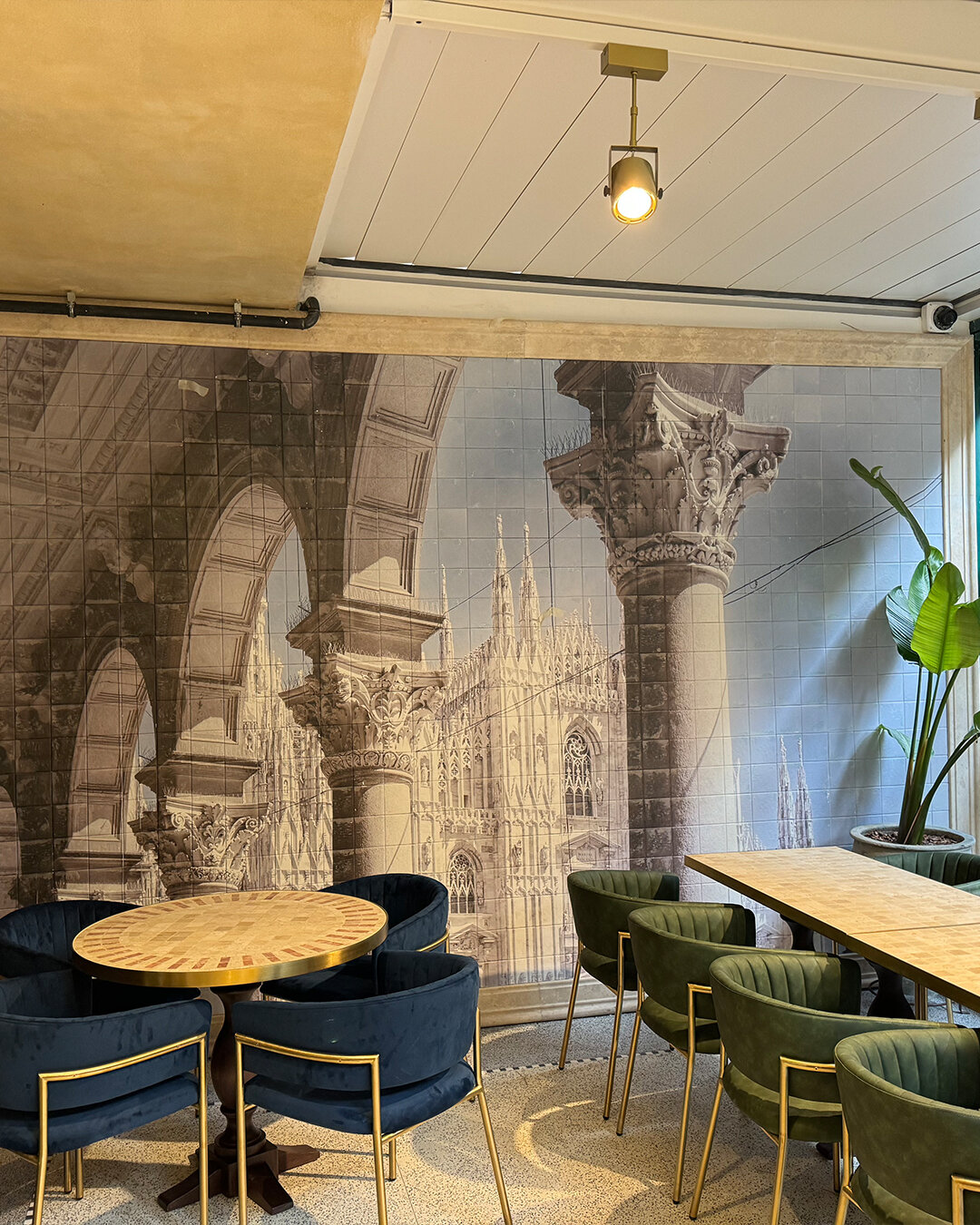 The interior, where modern and classic textures meet, creates a warm and stylish atmosphere with arched transitions, sophisticated lighting and custom-made furniture. Artistic frames and traditional motifs add a nostalgic touch to the venue, reflecting the Italian spirit in the best way.