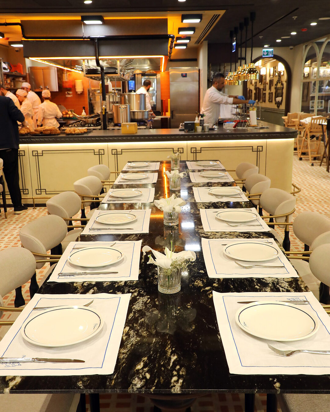 The specially designed stone oven located in the center of the restaurant both emphasizes culinary culture and offers its guests an authentic experience. This detail, combined with the open kitchen concept, adds a dynamic and inviting atmosphere to the venue.