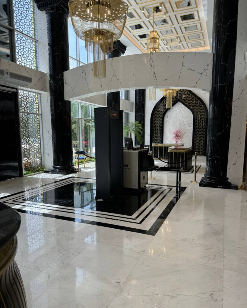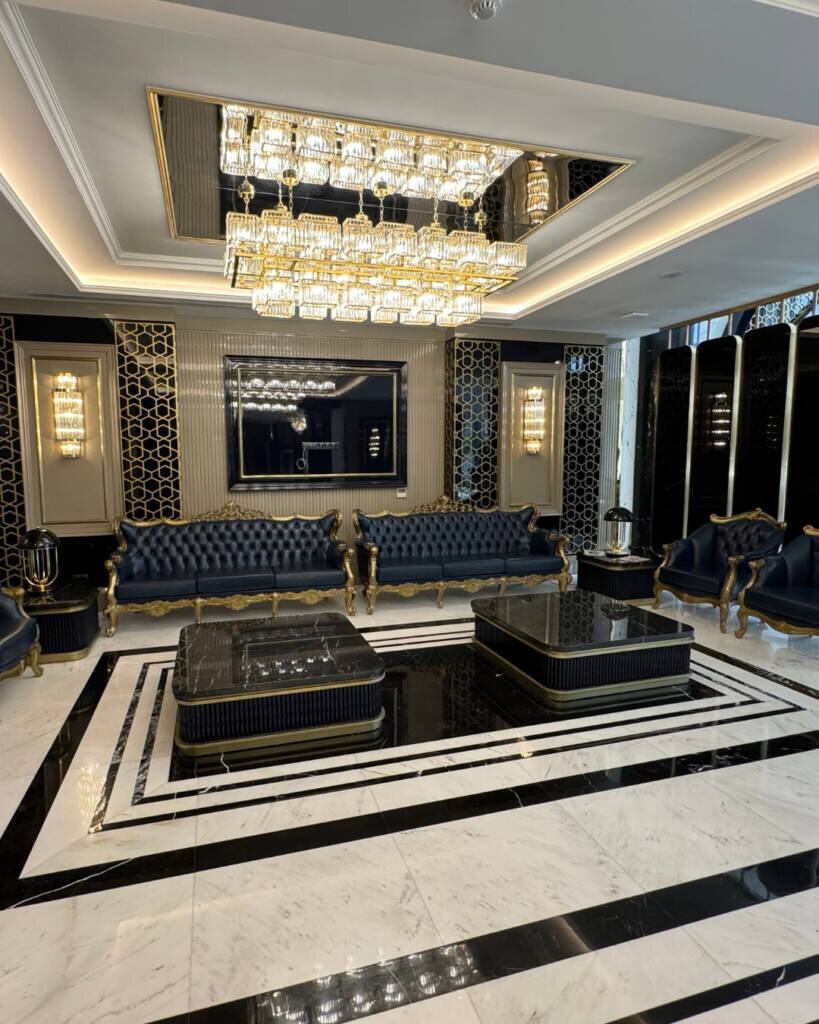 In the Special Ankara Project, as Bulutoğlu İnşaat & Marble, we meticulously selected and applied high-quality natural stones to add elegance and durability to the space. While Bianco Sivec marble used in flooring offers a sophisticated simplicity; Black Diamond marble, preferred for stair steps and private areas, created an impressive contrast with its deep black texture and shiny surface. In addition, Rain Forest marble added a stylish atmosphere to the space with its natural patterns on stair wall coverings and visual accent points.