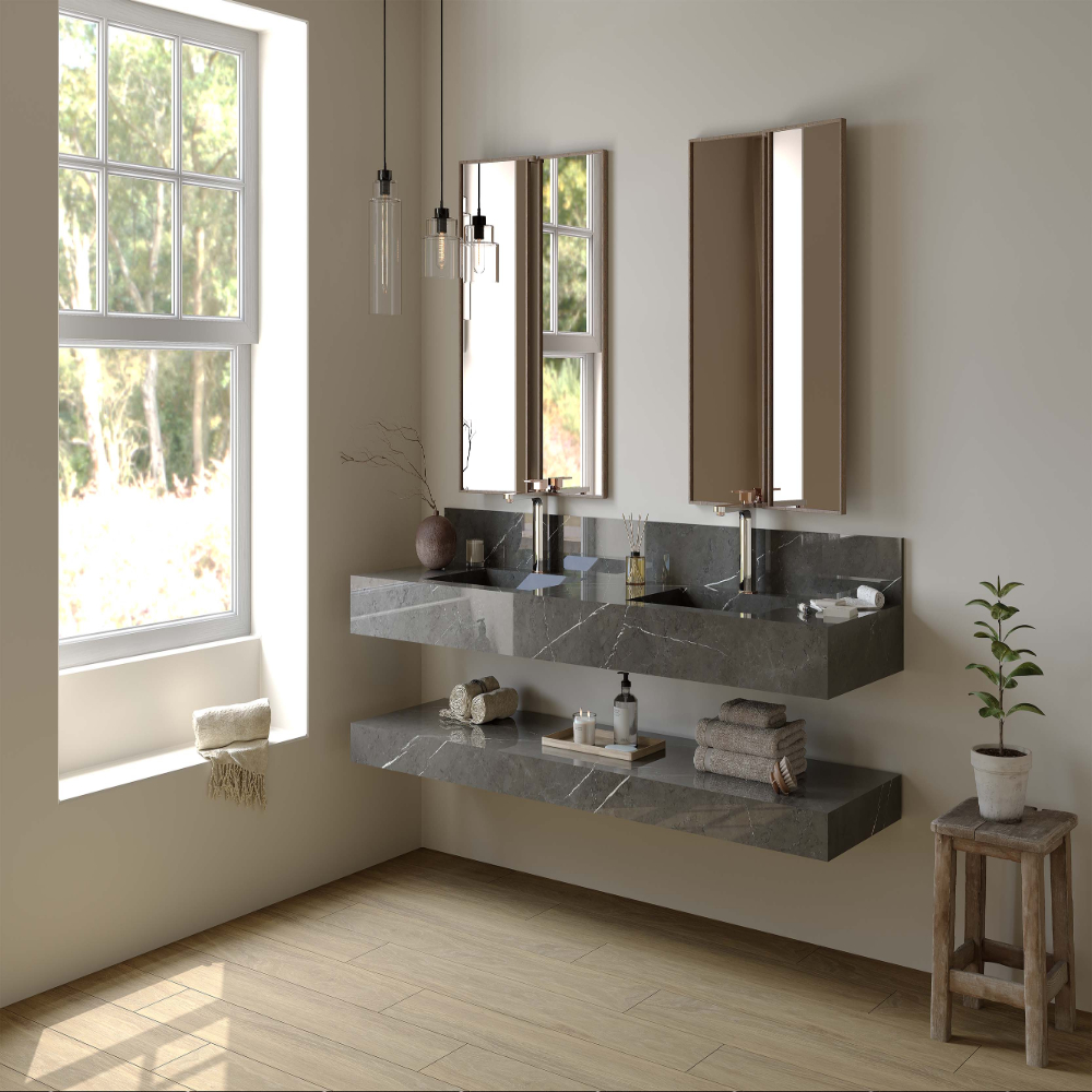 Its durability, heat resistance, and refined aesthetics make Pietra Grey Porcelain an excellent choice for kitchen countertops and islands.