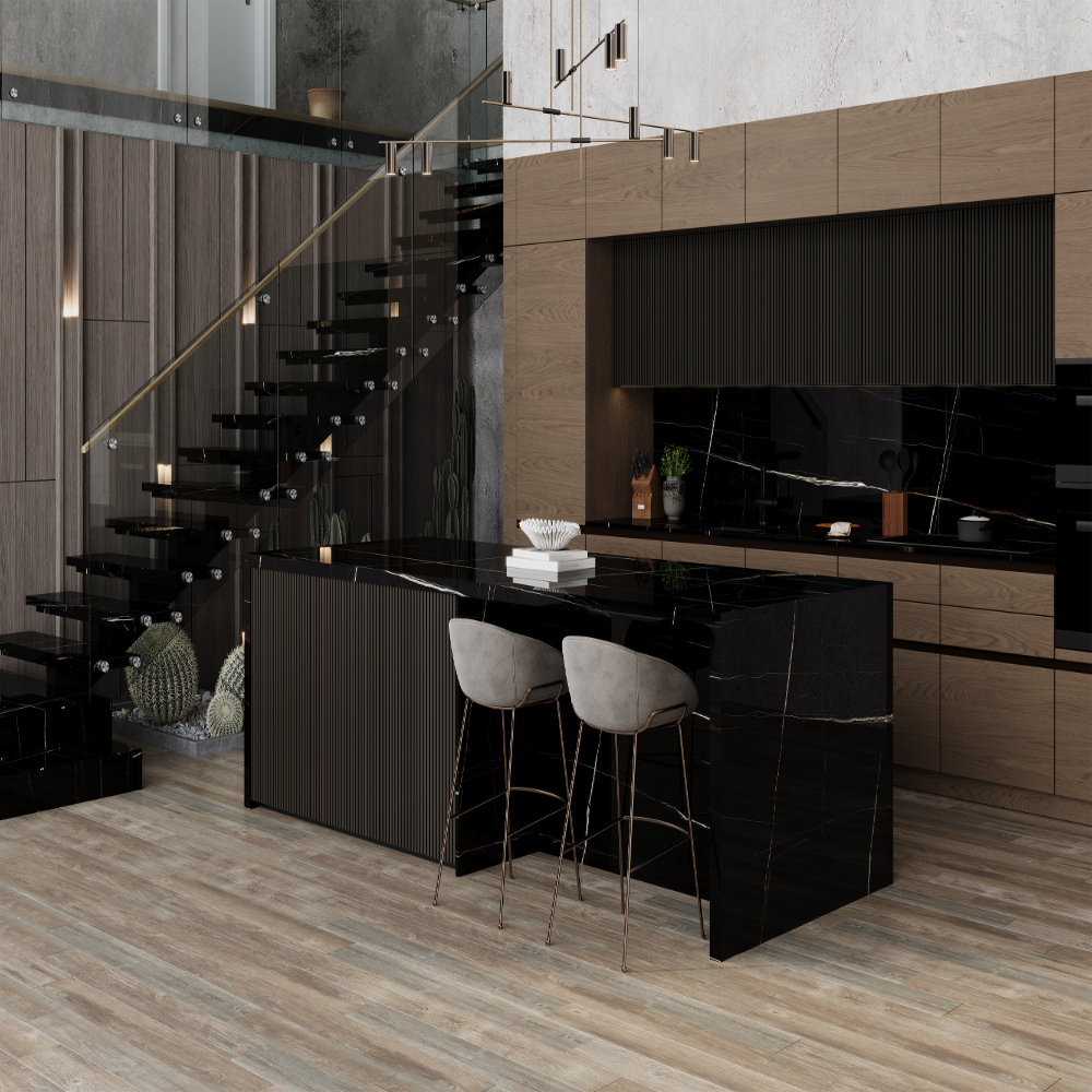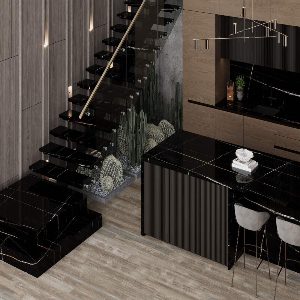 Sahara Noir Porcelain excels in heat resistance, scratch protection, chemical durability, stain resistance, UV stability, and ease of maintenance. It offers designers a high-performance surface with unmatched visual impact.