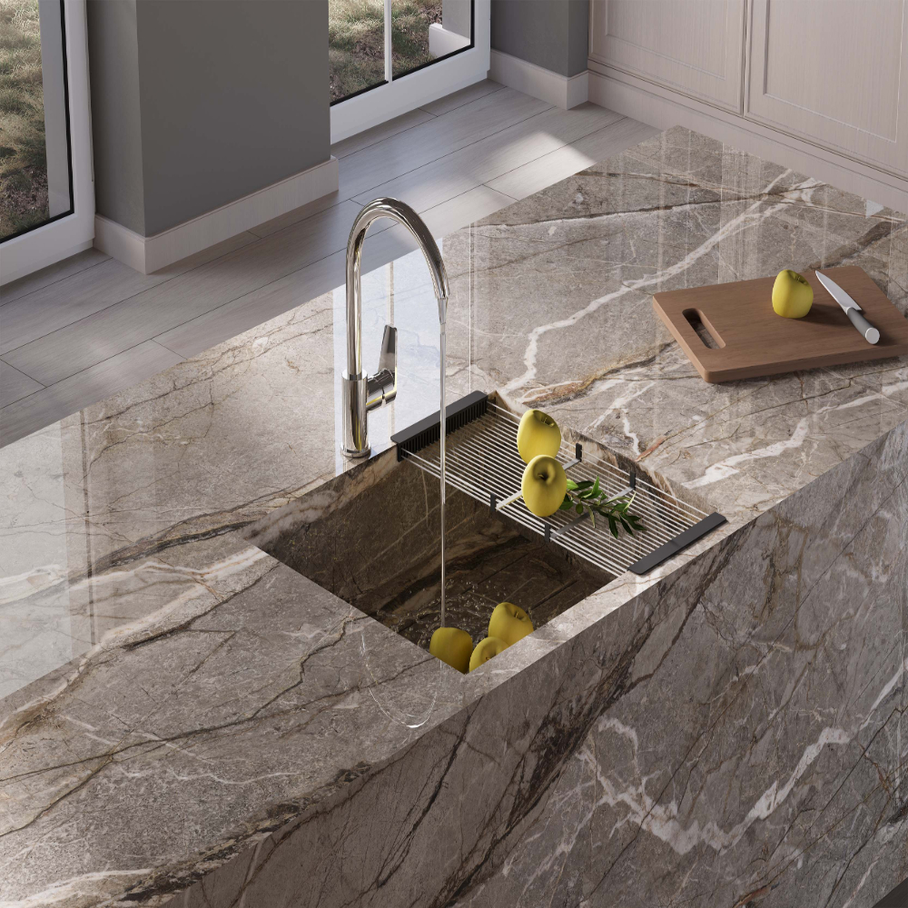 Silver Root Porcelain Countertop combines the visual richness of natural stone with the advanced durability of porcelain. It offers a timeless aesthetic, effortless maintenance, and reliable performance, making it an ideal solution for long-term architectural projects.